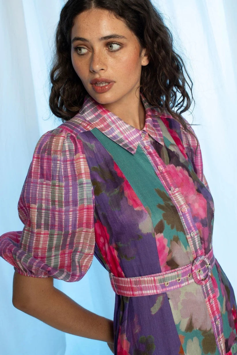 Designed with a high collar, button-up front, and puffed short sleeves for a fresh, feminine feel. The adjustable belt adds a flattering cinch at the waist, giving this effortlessly elegant silhouette a modern, wearable edge.