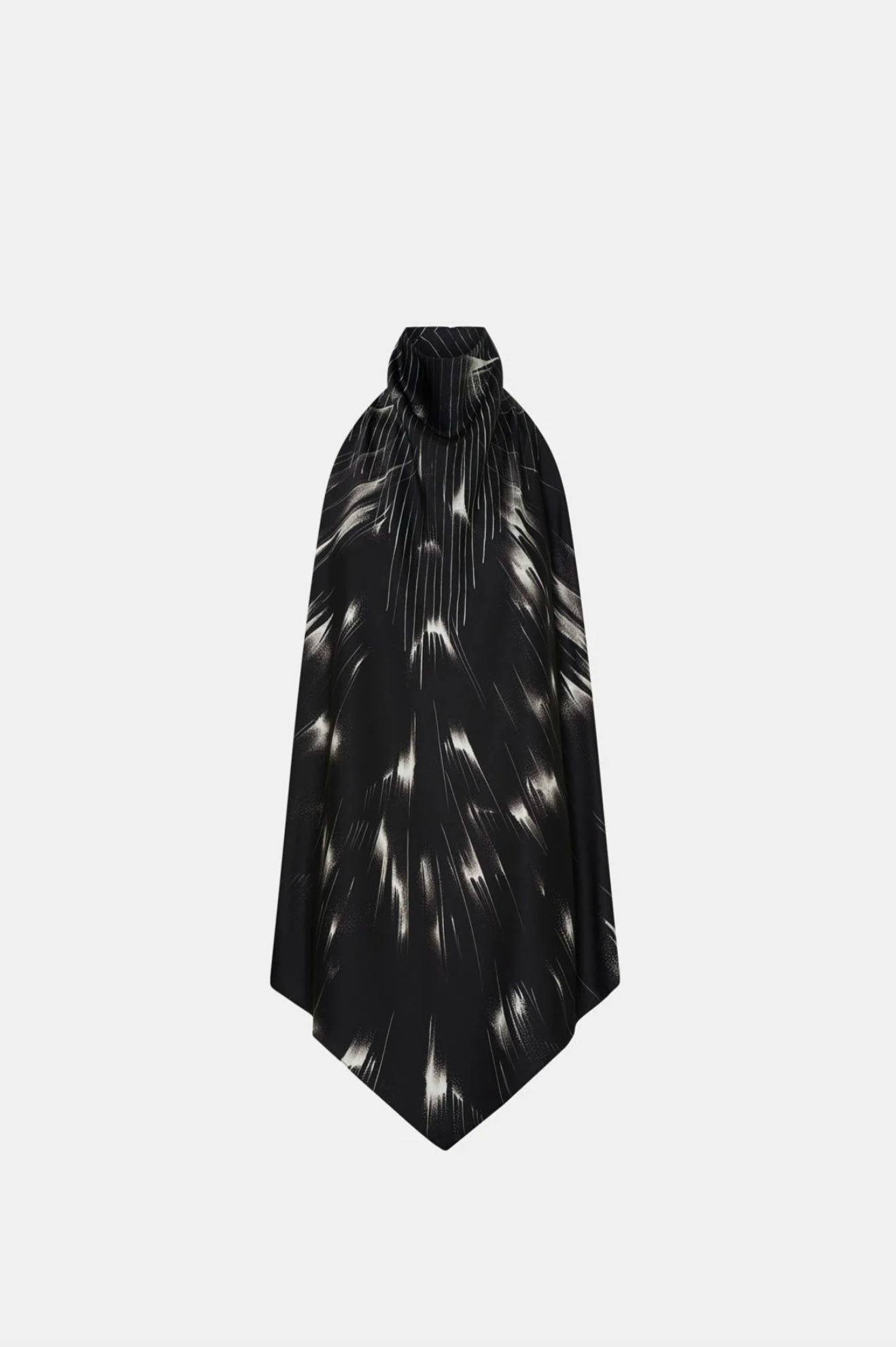 The Arvid Halter Neck Top is crafted from an in-house printed fabrication in a relaxed, draped silhouette. This top features an open back and a hook and eye closure at the centre back.