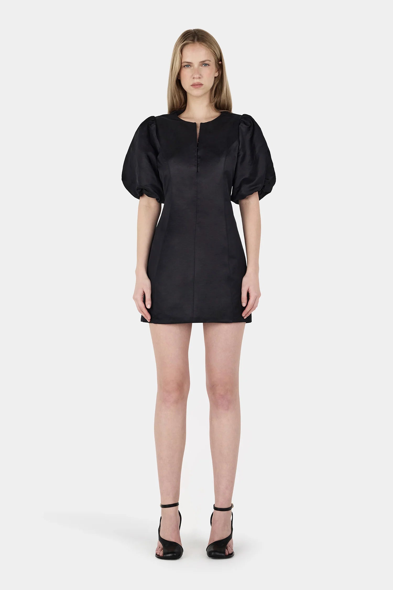 The Collins Dress is a reimagined take on our best-selling Pellegrino Top. Designed in a flattering fit to flare silhouette, it features romantic puff sleeves and hook-and-eye detailing along the front bodice. Fully lined for a sleek finish.