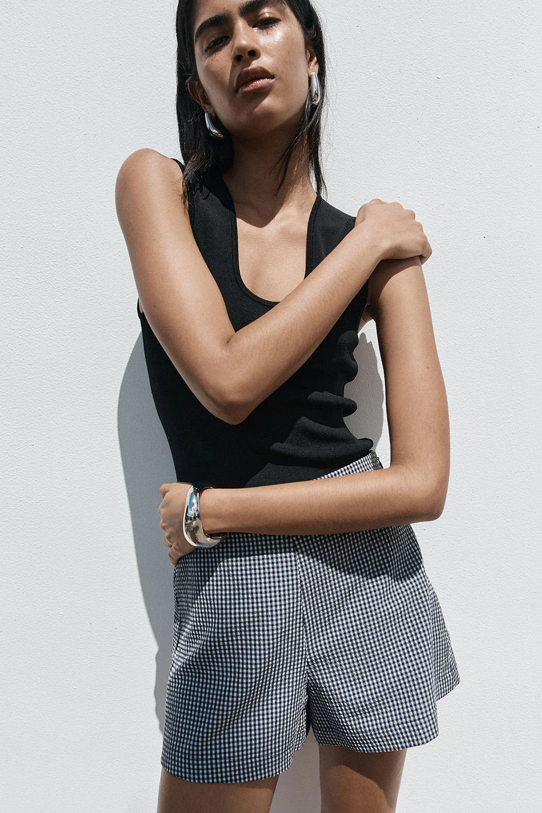Made from a lightly textured gingham fabric, the Tessa Short is a playful interpretation of vintage design. With a wide leg silhouette, these shorts are perfect for low key weekend outfitting. Style with elevated basics or the matching Tessa Vest. Read less