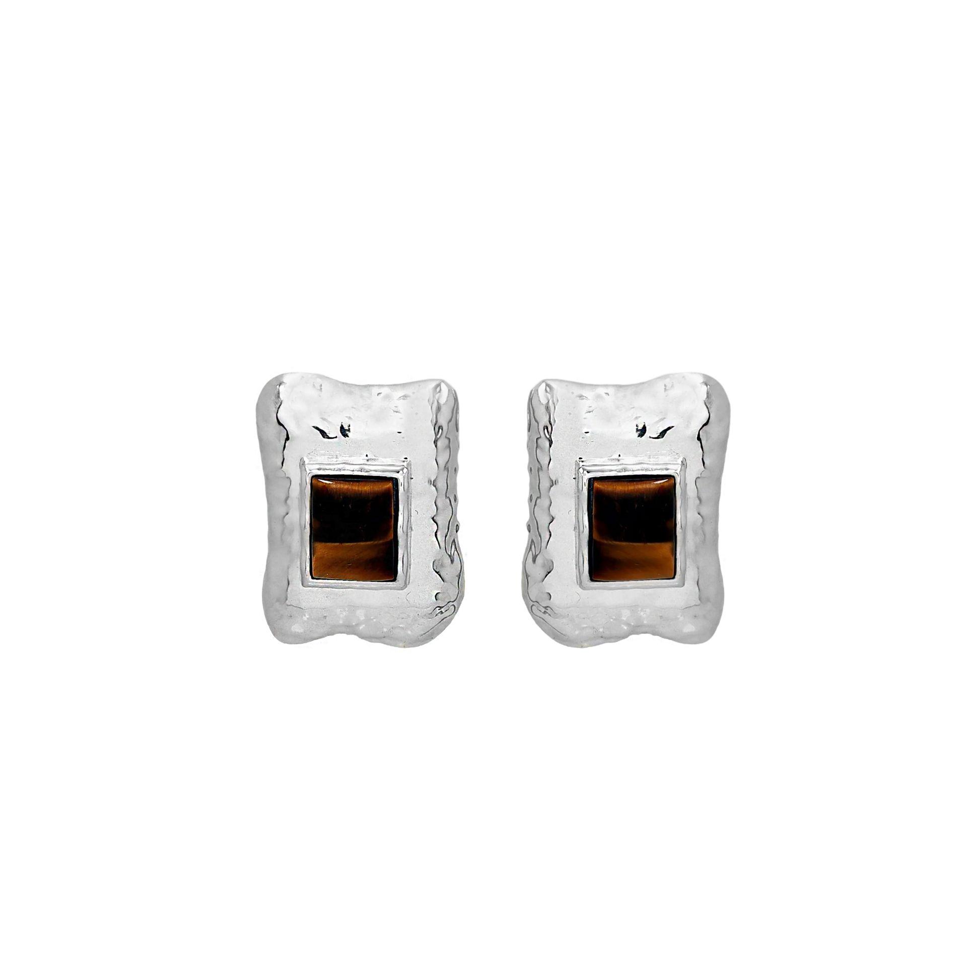 The Kauri Earrings in silver brings vintage-inspired structure into a modern, wearable silhouette. A softly contoured silver frame surrounds a deep Tigers Eye gemstone, creating a refined statement that feels elevated yet easy.