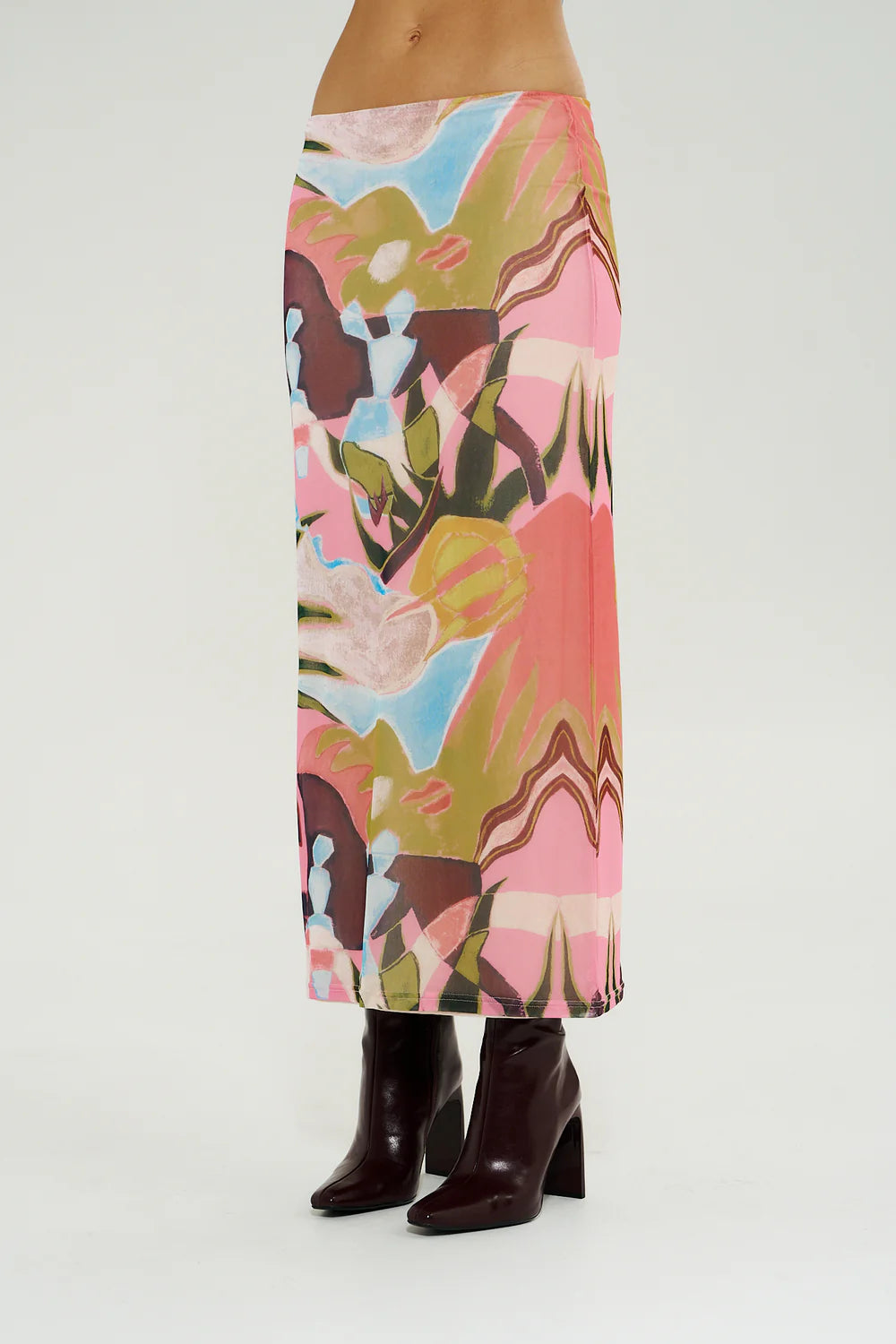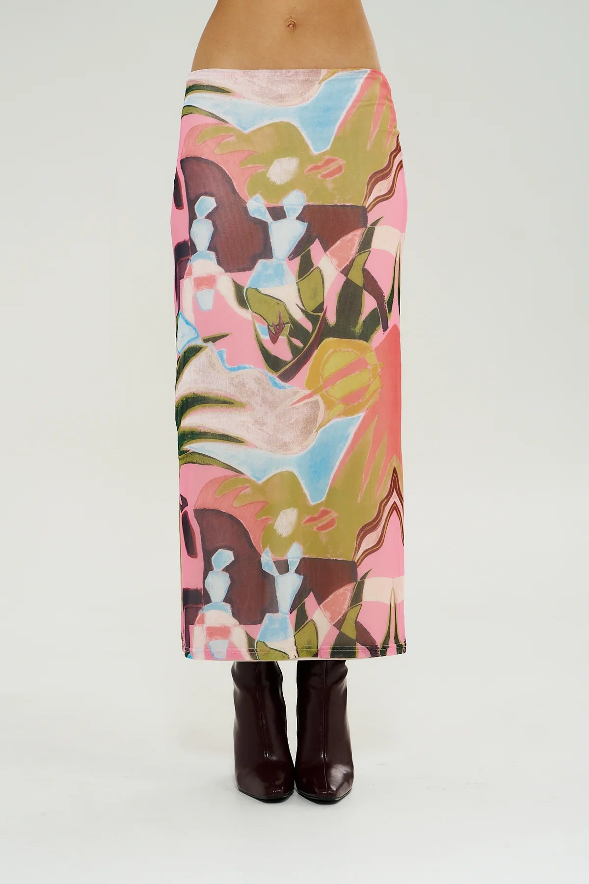 Discover understated elegance with this low-rise maxi skirt, defined by its refined pencil silhouette and premium lined mesh construction. The exclusive hand-painted Wonderland print elevates the design, creating a statement piece that balances contemporary styling with timeless appeal.