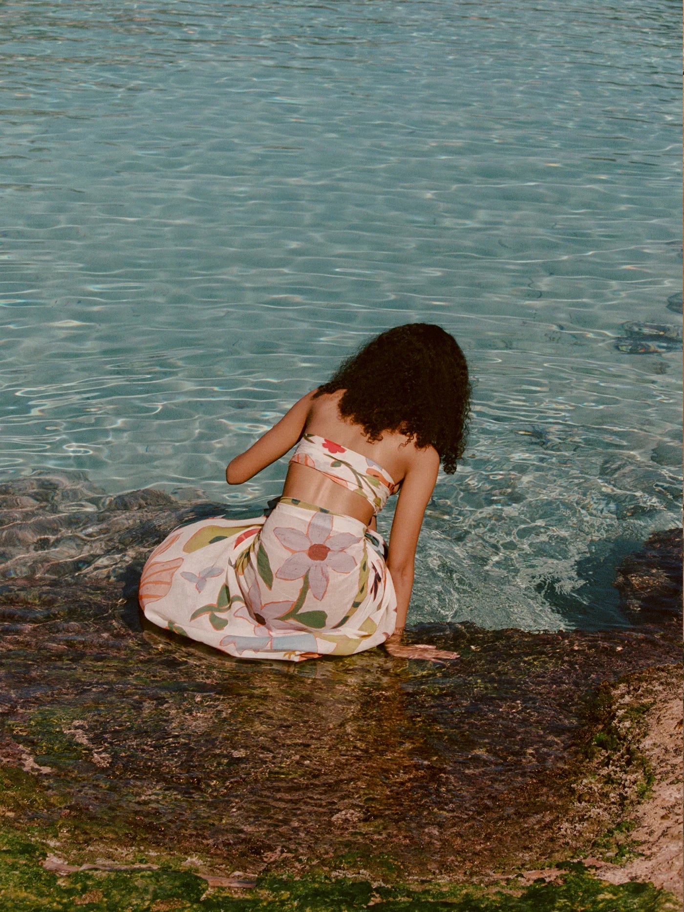 Where it all began. A perfect square of lightweight organic cotton, versatile for all your over-swim needs. Our signature piece—the Square Pareo can be tied as a mini or midi length beach cover-up, or folded into quarters and used for a myriad of purposes as a smaller square scarf.