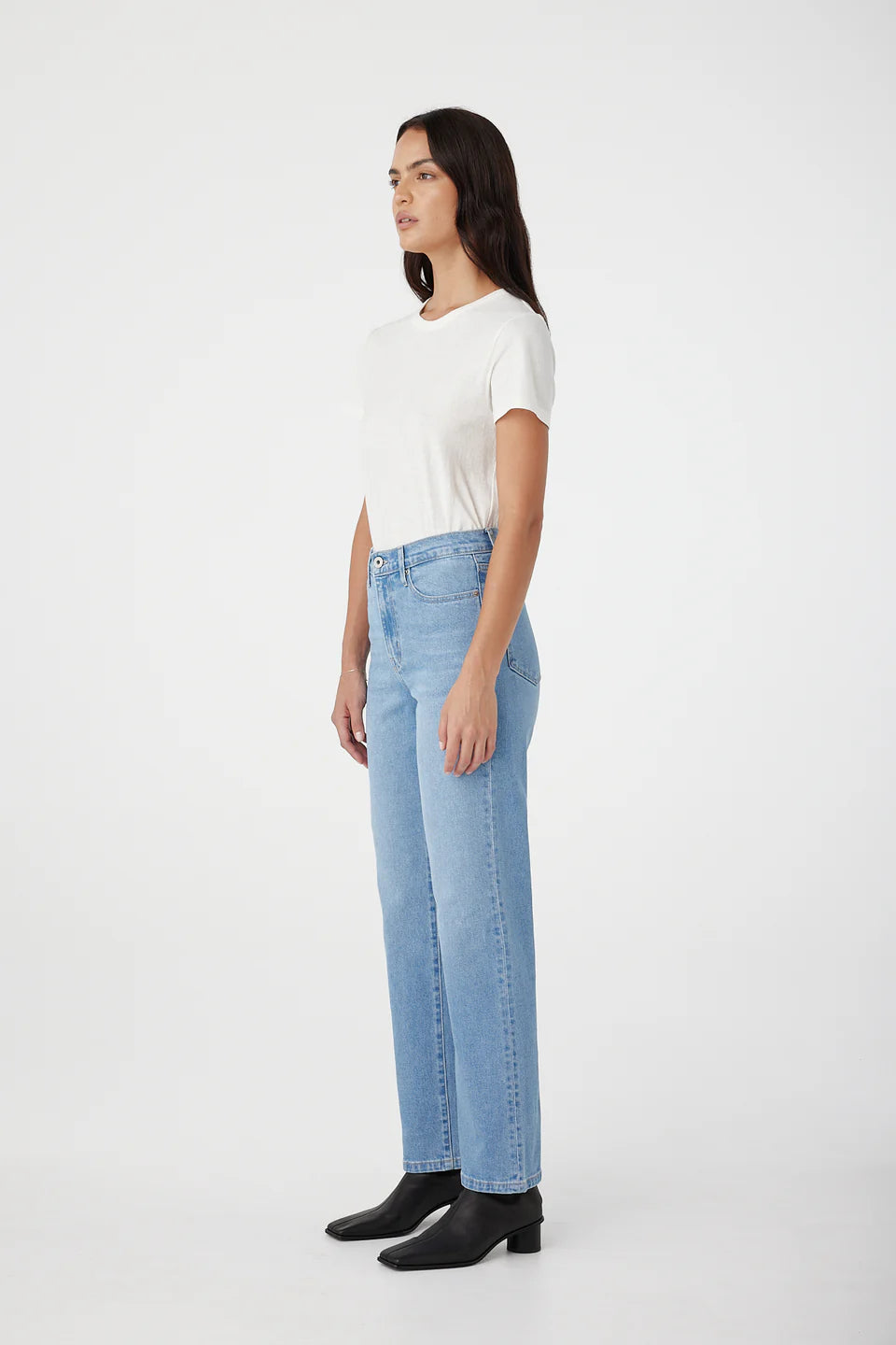 Our signature high rise, straight leg cut. Fitted through the waist and hips, falling straight to the top of the shoe. Crafted in a premium comfort stretch denim.
